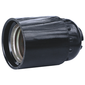 Патрон люстровый карболитовый Е27. Этот тип представляет собой изделие, с резьбой в металлической гильзе. Он довольно распространен, и широко используется в быту. Имеет керамическое основание, прижимное кольцо для крепления рассеивателя. Положение в пространстве может быть любое.